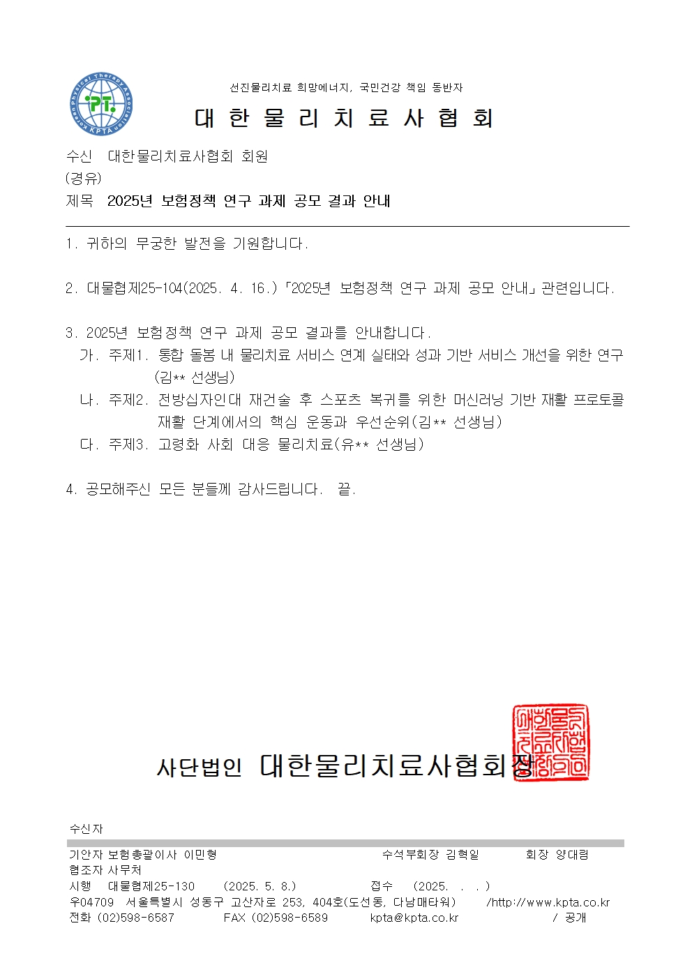 [안내] 2025년 보험정책 연구 과제 공모 결과 안내