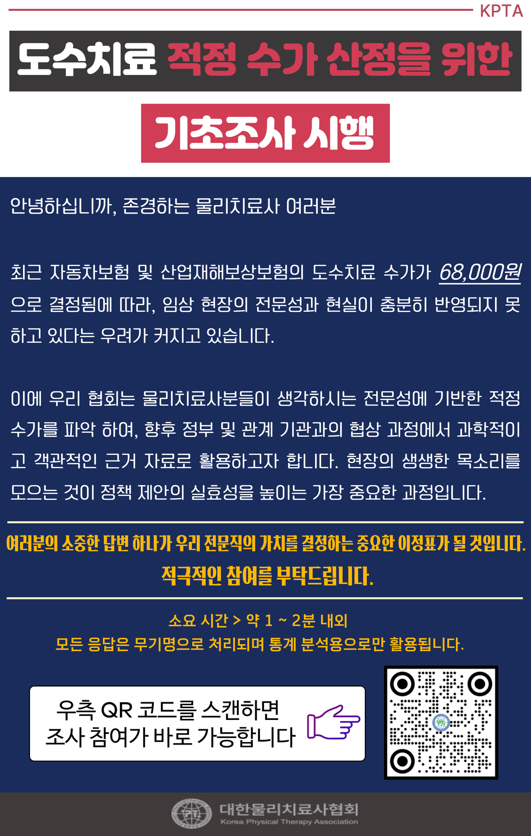 도수치료 적정 수가 산정을 취한 기초 조사 참여 안내