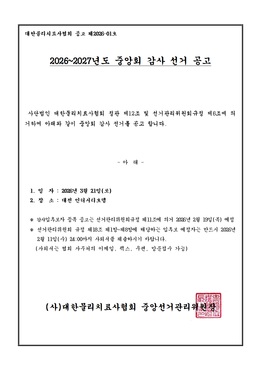 [공고] 2026-2027년도 중앙회 감사 선거 공고