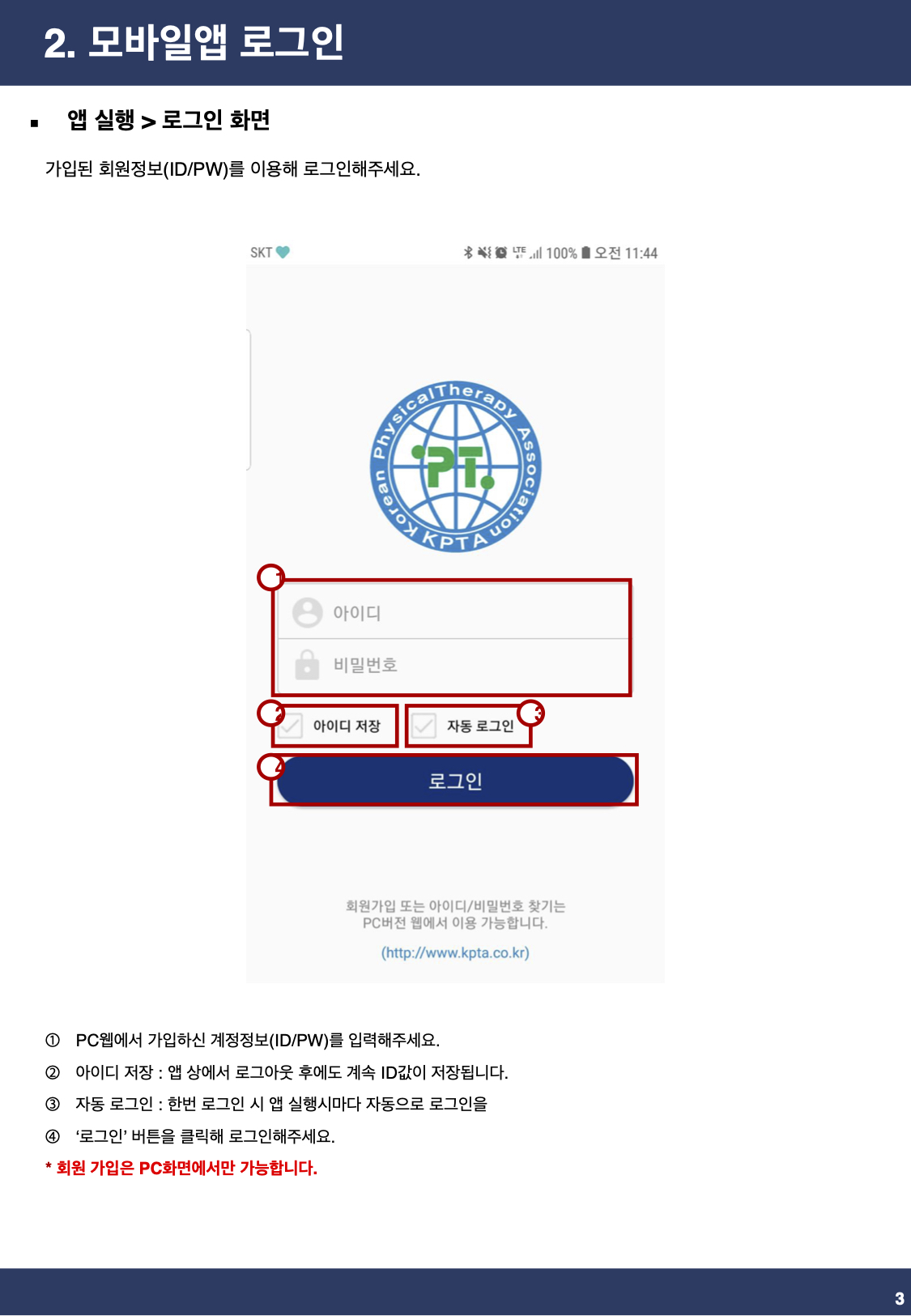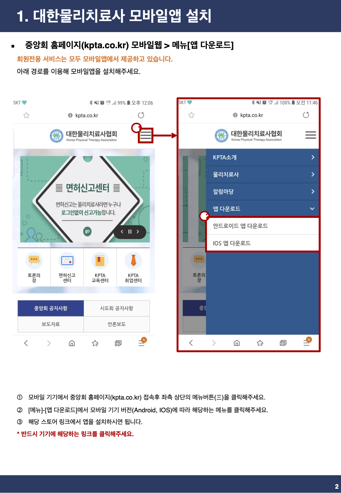 - KPTA모바일앱 사용 방법은 아래 안내 설명서 참조