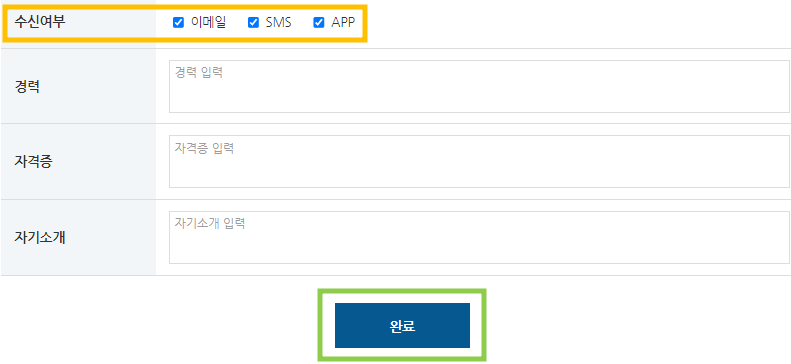 - 회원가입 시 수신여부의 '이메일, SMS, APP(어플)'에 선택 해제한 경우 정보 안내 불가