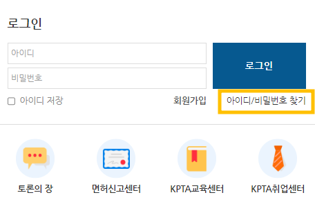 ※ 아이디/비밀번호 찾기 위치